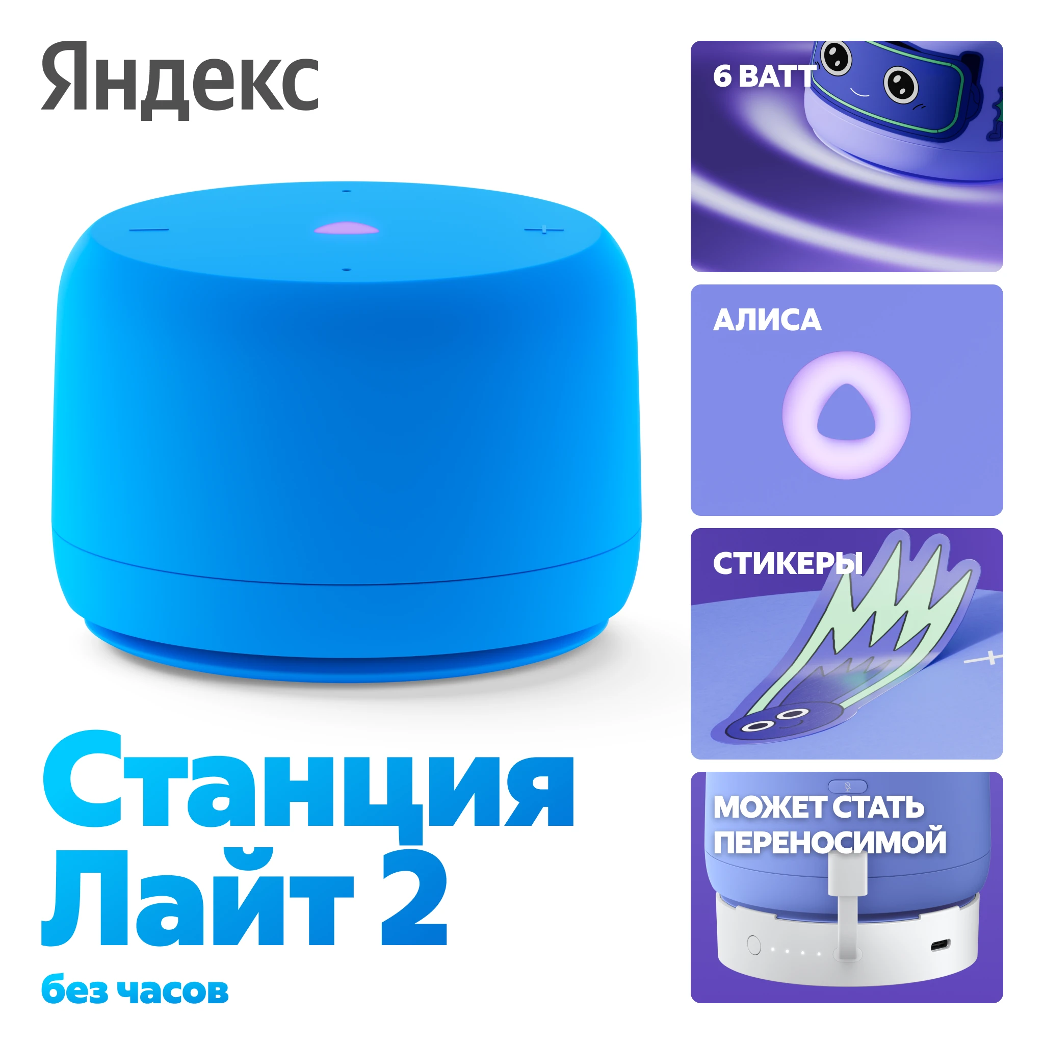 Акустическая система Яндекс.Станция Лайт 2 с Алисой (Синий, без часов)
